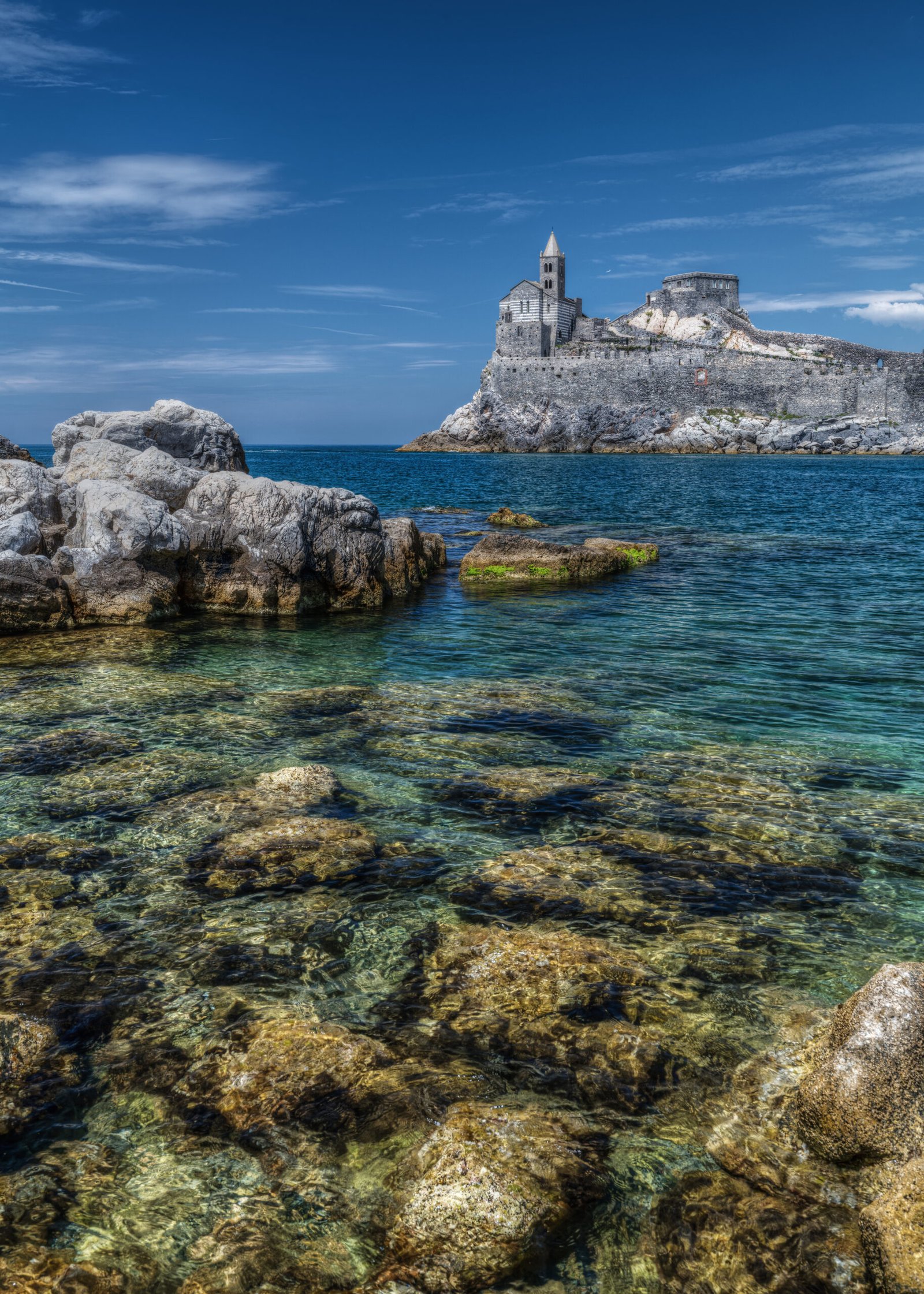 San Pietro domina il paesaggio come una regina scolpita nella roccia. Ovunque ti volti, lei è lì: maestosa, imponente, romantica. Dal Muzzerone, dalla Palmaria, dalle finestre dei vecchi mulini, è lei a guidare l’occhio e l’anima del fotografo.